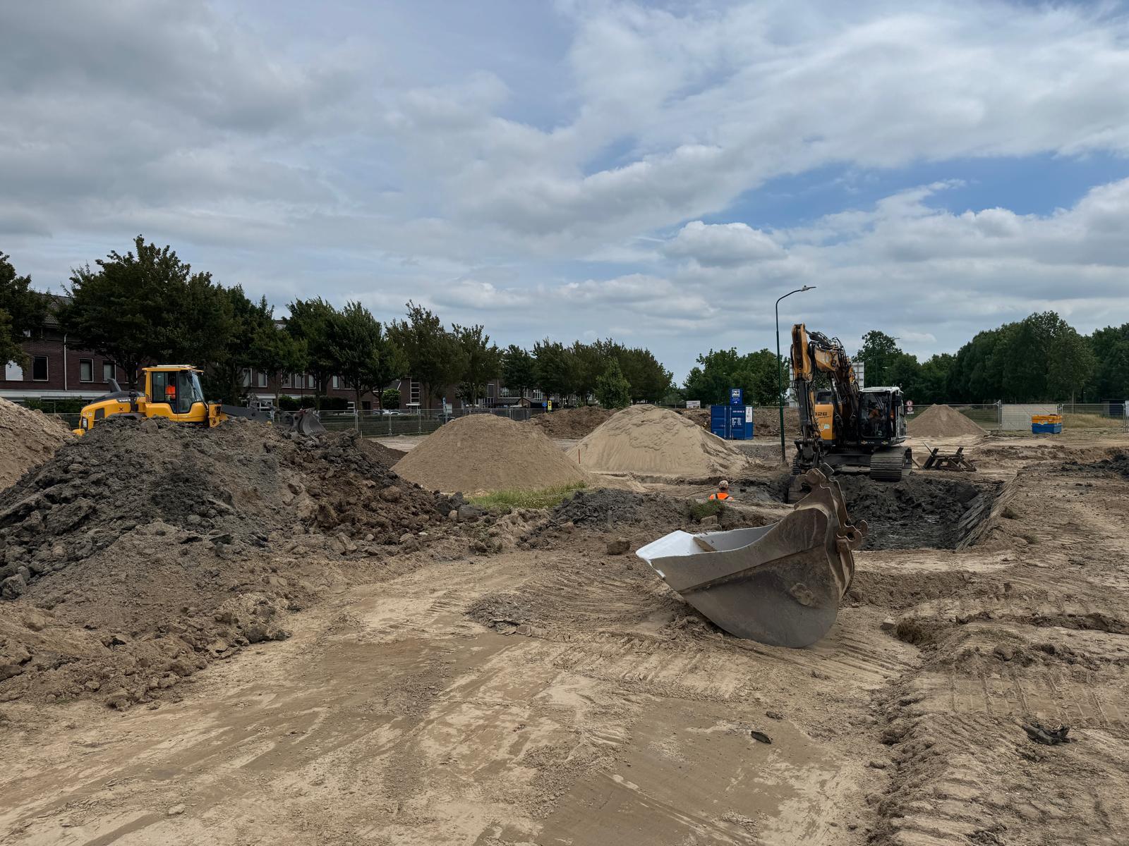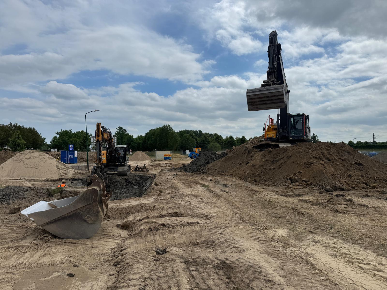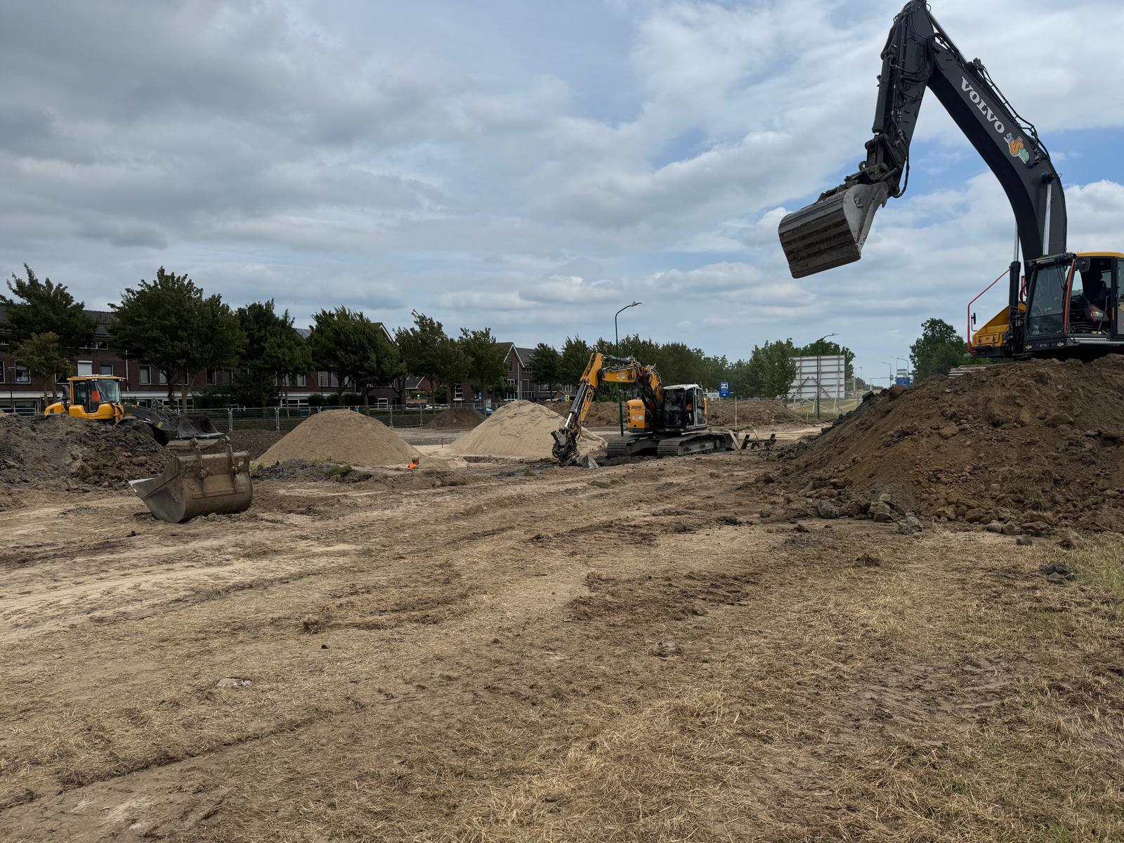 Ook deze week stond, net als vorige week, met name in het teken van het ontgraven van de sleuven voor nutsleidingen en rioolsleuven. Deze sleuven zijn vele meters lang, dus dat kost tijd. Ook werkten we aan het aanleggen van de bouwweg. Vandaag, vrijdag 27 juni, voeren we verbeteringen uit aan deze weg. Zo vegen wij deze schoon om losliggend materiaal te verwijderen, werken we met koud asfalt om gaten op te dichten en bekijken we waar we nog meer verbeteringen doorvoeren.