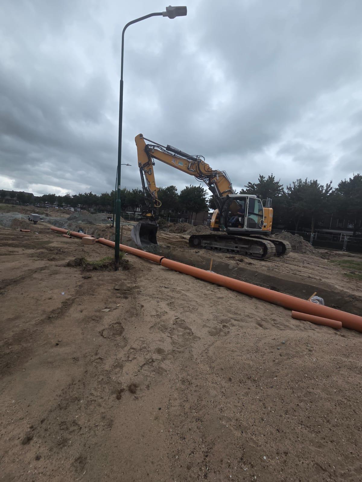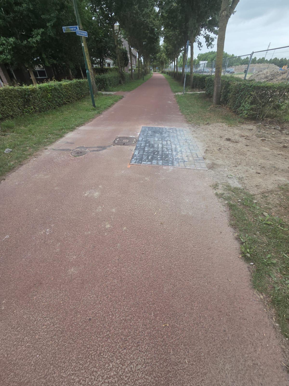 De afgelopen week hebben we gewerkt aan het plaatsen van nieuwe buizen voor vuil water en regenwater. Deze liggen nu onder de grond. Daardoor was het fietspad tijdelijk afgesloten.